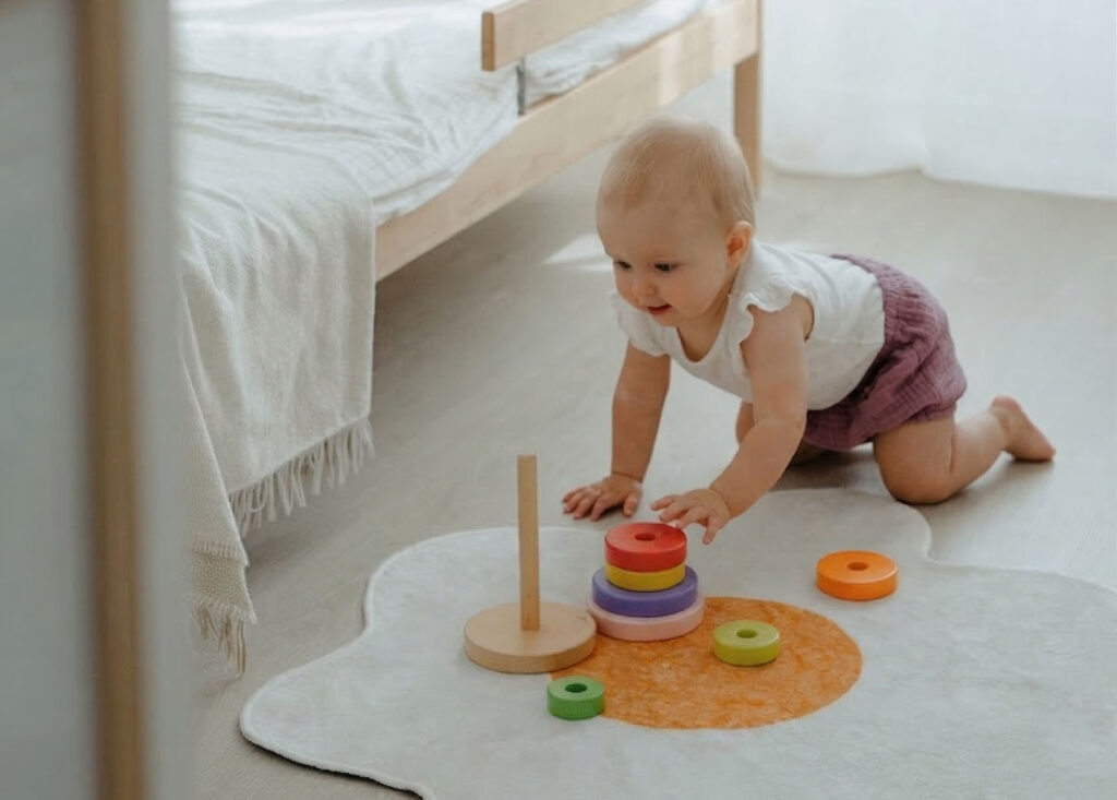 Wichtig ist, dass die Spielsachen zum Alter und zum Entwicklungsstand des Babys passen und genügend Freiraum für eigene Ideen lassen. Ob Bauklötze, Steckspiele oder einfache Balance-Elemente – sie alle bieten Anreize, aktiv zu werden und den eigenen Körper besser kennenzulernen.